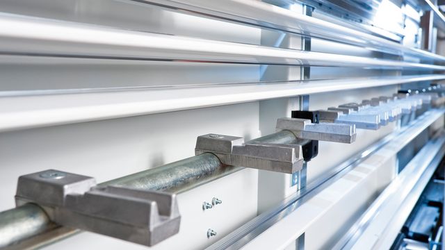 Bis zu 2200 Tonnen Stahl und Aluminium werden im eigenen HOLZ-HER Gestellbau verarbeitet. Eine vollautomatisch beschickbare Laserschneideanlage übernimmt hier die optimierte Aufteilung von Stahlplatten bis zu einer Stärke von 25 mm. So kann HOLZ-HER für alle steifigkeitsrelevanten Konstruktionsteile die ideale Materialstärke verwenden.
